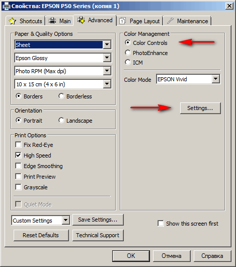 Повторяю, проб понадобится много, если вы подойдете к решению задачи перфекционистски. И это только для одного типа бумаги! Их у вас будет как минимум три или четыре глянцевая, полуматовая (сатин; эта бумага используется реже прочих), матовая и обычная. Профессионалу еще нужна настройка печати не напрямую, а из Фотошопа (или другого редактора). Так-то вот.
