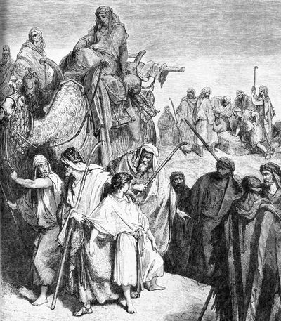 Рувим отлучился куда-то, а братья сели закусить. И вдруг появляется караван измаильтян, который направлялся в Египет.