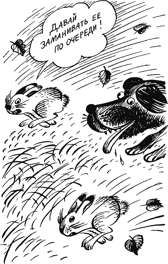 Миновав скошенное поле, они поравнялись с зарослями кустарника. Здесь они резко затормозили и проскочили под самым носом у собаки. На этот раз пес бешено бросился за ними, и они едва успели скрыться в кустах. Выбираясь из зарослей, они поняли, что собака, с треском ломая хрупкие кусты бузины, продирается вслед за ними. Затем прямо за спиной у себя они услышали лай и пустились вниз по открытому склону, чувствуя, что пес стремительно несется за ними по пятам.