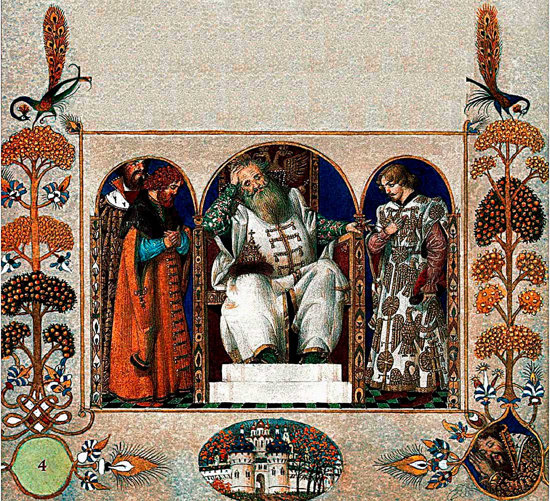 Езжайте, говорит, сыновья мои, по белу свету. Принесите мне Жар-птицу.