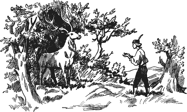 «Тут уж ты, златорогий, от меня не уйдешь!» подумал он и еще раз пришпорил своего вороного коня, чтобы поскорей оленя догнать.