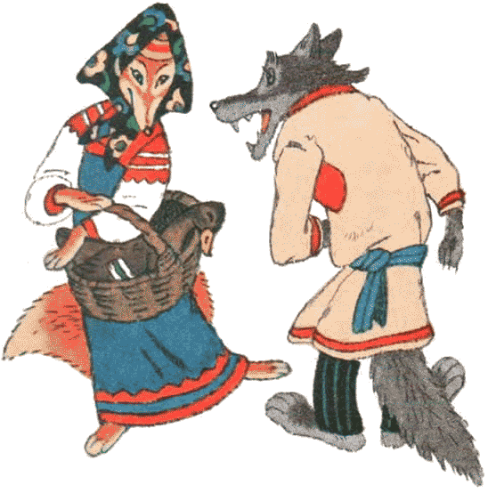 Вот и пошли кот с лисою. Медведь увидел их и говорит волку:
