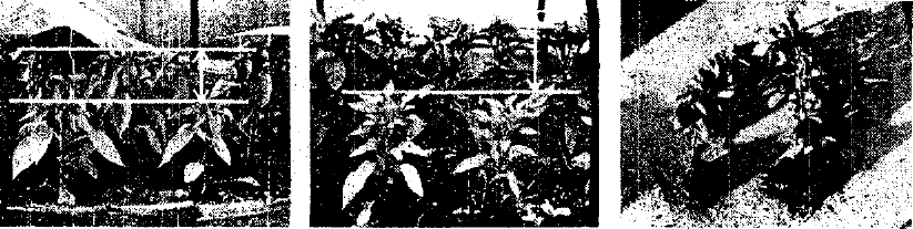 На фотографиях виден результат совместного применения методов агротехники природного земледелия органической мульчи и биопрепаратов. После прополки сорняков на контрольном ряду стала заметно, что замульчированные перцы значительно опережают в своем развитии контрольные. Они имели почти в два раза больше листьев, цвет которых был зеленый и сочный. Контрольные растения имели бледнозеленый цвет, когда на них появились цветы, то на замульчированных перцах уже были плоды.