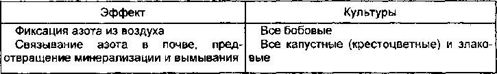 В табл.8 можно найти сведения о том, какой эффект дают различные культуры, используемые как зелёное удобрение. Выше было сказано, что зелёное удобрение преследует несколько целей и имеет несколько назначений. Одна какаялибо культура не может удовлетворить сразу все запросы. Поэтому важно определить, какое действие необходимо в первую очередь, и после этого выбирать соответствующую культуру или составлять смесь культур.