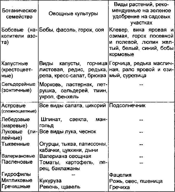 При работе с зелёными удобрениями необходимо также знать, к какому ботаническому семейству относится каждая культура. Это нужно для того, чтобы наладить правильное чередование культур. Растения, принадлежащие к одному семейству, поражаются одними и теми же вредителями и болезнями. Поэтому нельзя размещать подряд зелёное удобрение и основную культуру, принадлежащие к одному и тому же семейству.