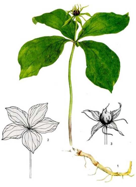 Вороний глаз четырёхлистный (Paris quadrifolia L., сём. Лилейные Liliaceae). Встречается в смешанных и широколиственных лесах (рис. 3).