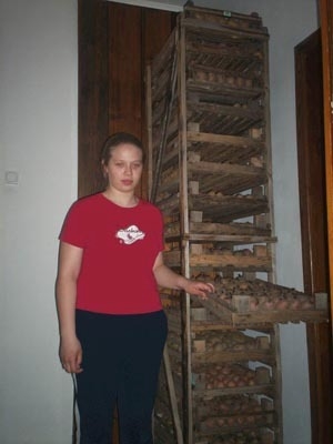 Первые стеллажи были в два раза шире, но работать с лотками, в которые загружается по два ведра клубней, не оченьто легко, особенно с верхними, да если еще и рост имеешь не "баскетбольный".