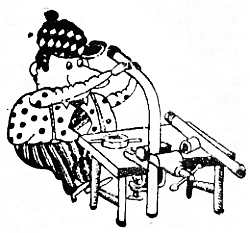 Клуппами, благодаря тому что их призматические плашки состоят из двух частей и расстояние между ними регулируется, можно начинать нарезать резьбу на трубе большего диаметра, чем нужно. В комплект клуппов входят и сухари, которые ставят вместо плашек. Тогда клуппом можно пользоваться, как воротком для метчиков. Наиболее распространенными, так называемыми косыми, клуппами (рис. 7) можно нарезать трубные резьбы до 1/2".