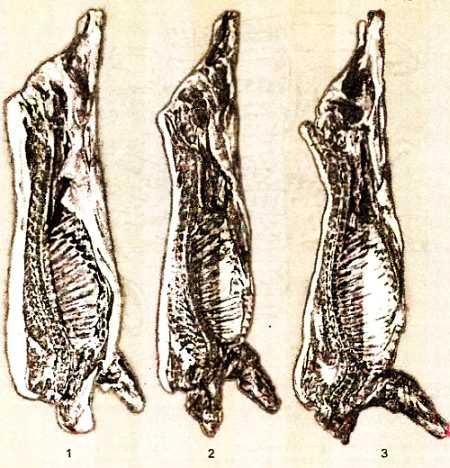 Полутуши свинины разделяют на три сорта: сальную, полусальную и мясную (рис. 4).