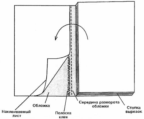 Перед наклейкой свободный край необходимо совместить с контуром обложки. Такую операцию повторим для каждого следующего листа. Необходимо следить за тем, чтобы излишки клея не выдавливались на правое «крыло» обложки: будучи закрытой, оно не должно приклеиваться к странице-вырезке, пока не закончена сборка «тома» за данный год, что можно делать постепенно по мере получения очередных номеров. Когда годовая «коллекция» собрана, заднюю обложку приклеивают к блоку. В результате получается опрятная сборка, сохраняющая «фирменное» лицо издания.