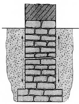 Рис. 24. Разрыв фундамента по высоте силами морозного пучения грунтов