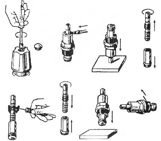 Рис. 11. Последовательность замены резиновых колец в вентильном головке с возвратно-поступательным движением шестигранного шпинделя