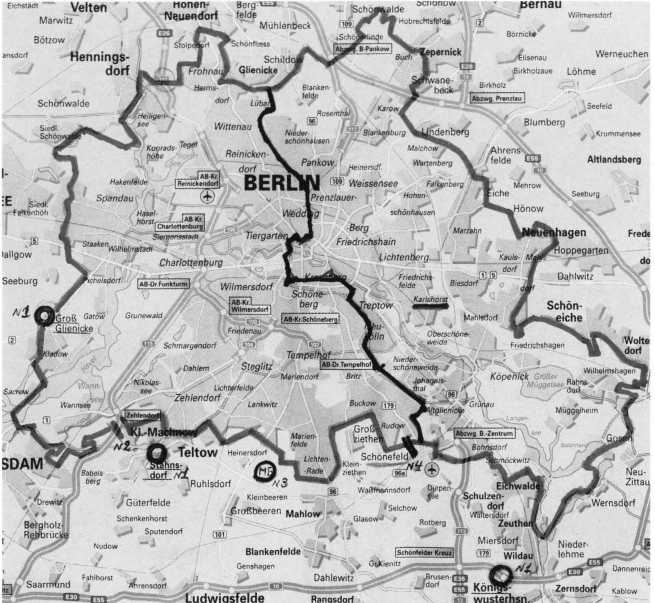 1 места дислокации батальонов охраны внешней границы Берлина: Кёнигсвустерхаузен, Штансдорф, Гросс Глинике;