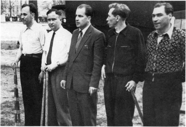 Команда городошников 3-го отдела на первенстве Управления Особых отделов: П. Иванов, Кочерганов,А. Н. Корнилков, М. М. Зимбулатов, С. Н. Котов. Июль 1958 г., г. Потсдам.