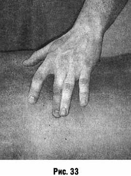 фаланг II и III пальцев, подобно тому, как выбивают дробь барабанными палочками (рис. 33).