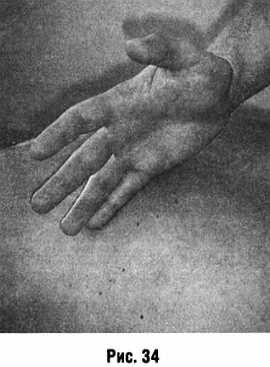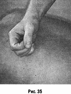 Поколачивание ритмичные удары наносят локтевым краем кисти, слегка сжатой в кулак (рис. 35).