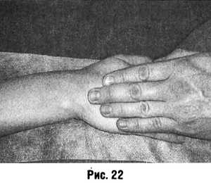 Пересекание аналогично приему пиление, но выполняют лучевым краем кисти при максимальном отведении I пальца (рис. 28).