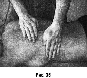 Потирание сдвигание, но совершаемое в быстром темпе при возвратно-поступательных движениях, в результате которых происходит проскальзывание массирующей поверхности по массируемому участку (рис. 36).