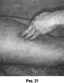 Подталкивание выполняют колебательные движения с большой амплитудой концами дистальных фаланг IIV пальцев плотно лежащей на массируемой поверхности кисти (рис. 31).