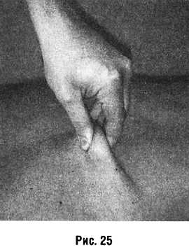 1-я форма (стабильное) ладонными поверхностями (подушечками) дистальных фаланг противопоставленных I и IIV пальцев захватывают кожную складку, сдавливают и приподнимают ее, подобно тому, как вылущивают косточки из ягоды (рис. 25).