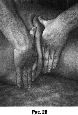 направлениях, и между ними образуется валик из массируемых тканей (рис. 27).