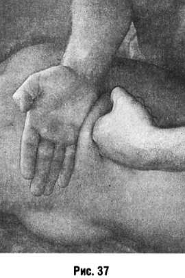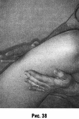Валяние массируемые ткани подвергают сжиманию и перетиранию вытянутыми, установленными параллельно ладонями рук, движущихся в противоположных направлениях (рис. 38).