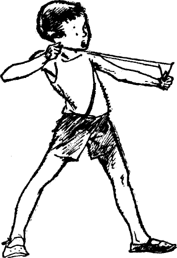 Клякса вынул рогатку, вложил камень и шумно вздохнул. Потом он поддернул на плече лямку штанов, как поддергивают ружейный ремень, отправляясь в опасный поход.