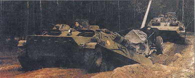 МТ-ЛБ с ПУ ПТУР АТ-6, которая при необходимости может быть приподнята.