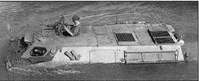 Машина плавающая, на плаву приводится в движение кормовым водометом. Перед форсированием водной преграды поднимается носовой щиток.
