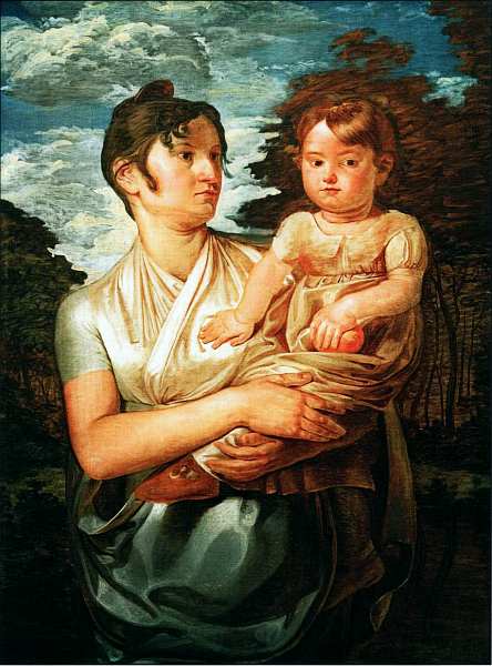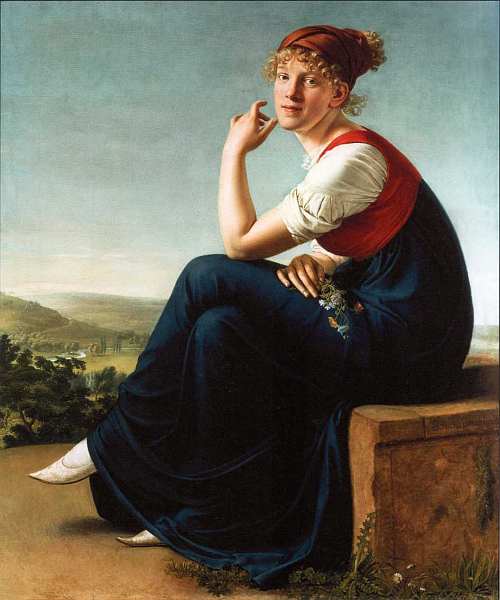 Немецкий художник Готлиб Шик был почитателем творчества знаменитого французского мастера Жака-Луи Давида. Представленная работа прекрасный образец живописи неоклассицизма. Шик создал лаконичное полотно, очень ясное по своему силуэту и композиции. Он изобразил Хайнрике Даннекер дочь придворного скульптора Иоганна Генриха Даннекера из Вюртемберга. Струящаяся юбка пронзительного синего цвета впечатляет своей осязаемостью и светоносностью. Героиня одета в наряд традиционных цветов Богоматери: синего, красного и белого. Существует и другое мнение: некоторые специалисты полагают, что модель облачена в цвета французского триколора и ее одеяние имеет чисто политическое значение. Какая бы трактовка ни пришлась по душе зрителю, нет сомнения, что портрет притягивает обаянием юности и свежести. Гармония окружающего пейзажа лирически перекликается со спокойной уверенностью взгляда и цветущей молодостью девушки.