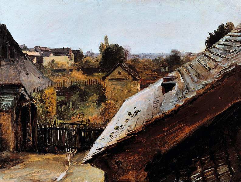 На крыше отражается мягкий свет, виден «непарадный» задний двор, который было не принято изображать в пейзажах. В то время не считали, что подобная «изнанка» быта может обладать поэтической теплотой и красотой. Тонкая моделировка цвета создает ощущение уюта домашней жизни. Позже гораздо более известный в Германии и за ее пределами живописец Адольф Менцель разовьет творческие принципы Блехена до предимпрессиони-стической атмосферности.