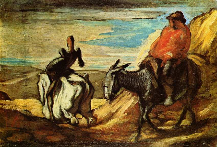 Для данного полотна художник использовал очень насыщенные цвета, написав нереалистично густой цвет неба. Этот оттенок придает всей картине нарочито выдуманный вид. Особое внимание следует уделить компоновке. Живописец крупно рисует два холма, занимающие большую часть холста, сверху синее без проблесков небо, в центре вертикальная доминанта. Эти простые элементы, гармонично сложенные между собой, придают полотну еще больший уют. Герои утопают в зелени, в лугу, они одеты в средневековые костюмы. Весь пейзаж, таким образом, становится идиллической картиной золотого века, райского места, затерянного среди холмов. Интерес к миру прошлого роднит художника с коллегами английскими прерафаэлитами.