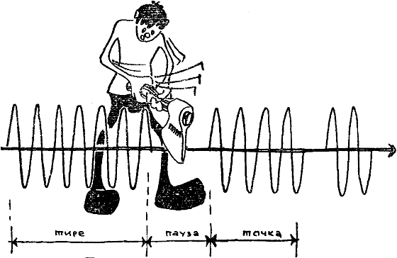 Как заставить волну переносить более богатую информацию? Как заставить ее переносить разумные сигналы телеграфные, телефонные, телевизионные? Для этого на волне нужно сделать некие пометки или зарубки. Первым таким «дровосеком» был А. С. Попов. Родоначальница всех телеграмм («Генрих Герц») была нанесена на волну с помощью самых грубых зарубок. Текст был передан с помощью азбуки Морзе. Точкам и тире соответствовало излучение волны, паузам отсутствие излучения.