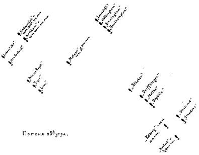 Схема 4. Расположение эскадр в 9 ч. 00 м.