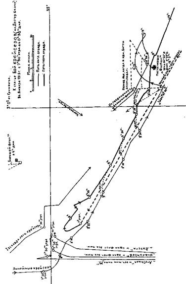 на следующий вечер, также в темноте. Скорость хода была рассчитана так, чтобы с рассветом 24-го крейсера могли подойти к SO-й границе банки. Входить в пределы банки еще в темноте являлось нежелательным, так как могло случиться, что неприятельским боевым силам, находившимся в районе между крейсерами и Гельголандом, удалось бы остаться незамеченными. На пути к банке надлежало по возможности воздерживаться от осмотра торговых и рыболовных судов, чтобы не оставлять для этого позади ни одного миноносца; на обратном же пути все встреченные рыболовные суда следовало осматривать и в надлежащих случаях приводить в порт.