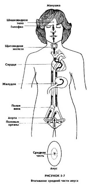 Другая находится на стыке верхней части тела и головы и известна как "черепная помпа" (рис. 54(6)). Многие люди, которые задействовали эти "помпы", отмечают ощущение "вздутия" энергии, перемещающейся вверх вдоль позвоночника во время Яичникового дыхания.