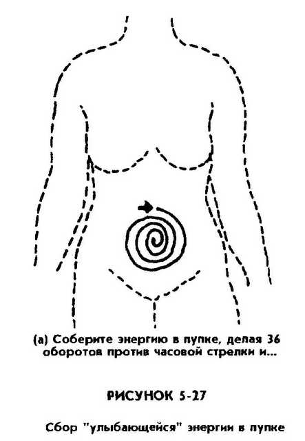 Потратьте некоторое время на то, чтобы во время практики действительно почувствовать тепло. Не ускоряйте это и всегда поддерживайте работу «помп» во время вдохов и выдохов. При выполнении упражнения используйте в большей степени мысленную, а не физическую тягу. Пусть вашим проводником будет ощущение тепла. Никогда не забывайте после нескольких вдохов приводить энергию вниз к пупку, поскольку область пупка является просторным и безопасным местом для хранения этой теплой жизненной энергии.