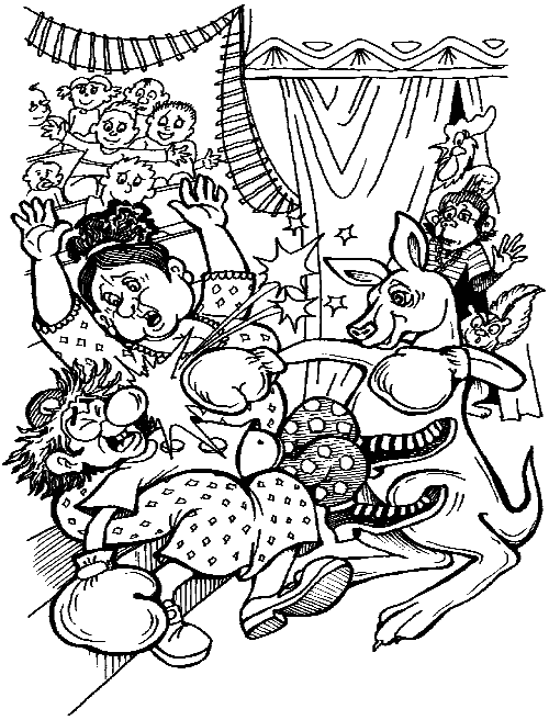 Австралиец был удивлён: как же так, он отплатил трусоватому грубияну той же монетой, а народ не оценил его порывов? Кенгуру вернулся «в ринг». Стукнул без энтузиазма клоуна, слегка вмазал рефери, а директор успел увернуться. Чемпион покинул ринг непобеждённым.