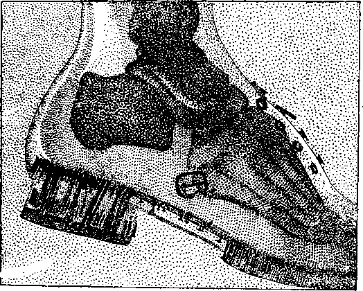Посмотрите на рентгеновский снимок ноги в ботинке (рис. 12). Тут хорошо видны кости ступни и ноги, металлические колечки, через которые продеваются шнурки, и гвозди, которыми прибит каблук, но кожа ботинка почти совершенно не видна, как будто её и нет.