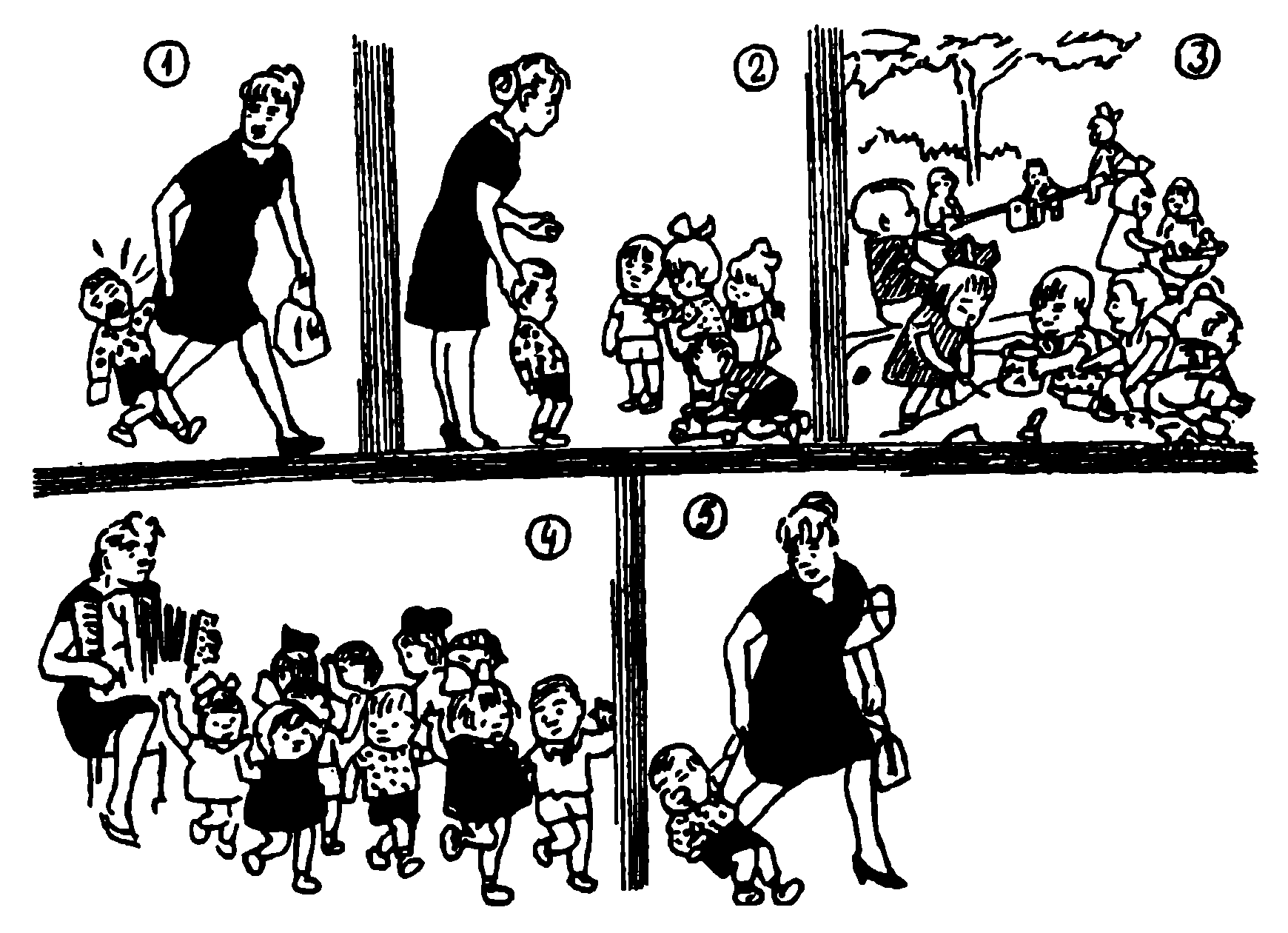 Таким образом, по содержанию предложенной картинки ребенок «пишет» устно рассказ, предварительно имея в виду, что потом будет «читать» его другим; «перечитывает» (то есть проговаривает для себя) и совершенствует, исправляет его; далее «читает» свой рассказ (если, конечно, он сам этого хочет, если считает, что у него на этот раз получился интересный рассказ, если хочет услышать, что посоветуют другие, как они его воспримут) товарищам, «читает» его медленно; при «чтении» имитирует чтение из раскрытой тетради или книги, избегает допущения ошибок и повторов.