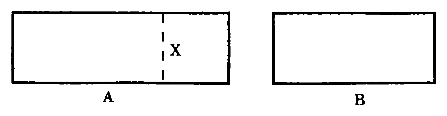 «Можно от полоски А отнять лишнюю часть», говорят дети (Обозначим ее буквой X. Это есть неизвестная величина.) Записывают: