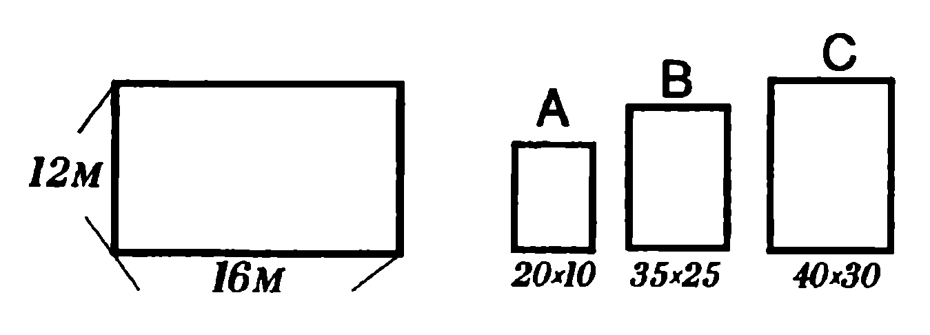 А = 200 кв. см, В = 875 кв. см, С = 1200 кв. см.