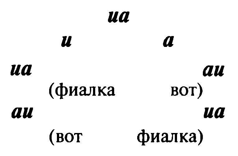 Не буду интриговать Вас дальше, уважаемый Учитель, и объясню, о каком открытии идет речь: с помощью двух гласных, имеющих простейшее начертание, составляются первое красивое слово и первые фразы. Это первое слово есть название нежного, красивого цветка фиалки, а первые фразы обозначают человеческую взаимность, когда один показывает другому цветок и может сказать с чувством радости: «Вот фиалка. Фиалка вот». Великий Якоб делает так: рисует ребенку фиалку, а цветок этот знаком каждому ребенку, и пишет под ним слово и фразы. А это выглядит в учебнике так: