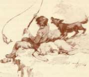 Видрпкъ Г[|) п|1ежнему сйд-Клъ на б|>|)е-гу. Подъ сочувственной ворчан1е Зку. онъ ругаль чортова окуни. кото|1ый пере-г[гызъ леску и теперь съ прежнимь упор-ствомъ водиль его за ноп,. Видрикд. ви-лклъ.