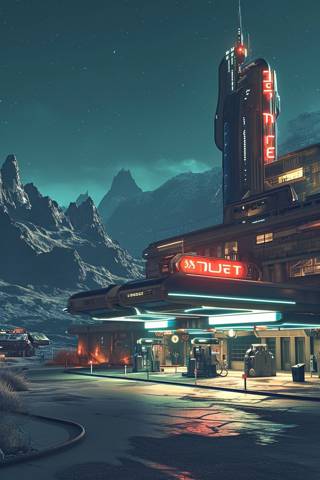 Место разительно отличается от примелькавшихся постап-пейзажей тут поздний вечер, но горят фонари и окна, подсвечены колонки заправки, ходят туда-сюда люди, на парковке, кроме мироновского каравана, ещё десятка три разнообразных машин. А в открытом боксе висит на подъёмнике полуразобранный микроавтобус, вокруг которого неспешно, но чётко движутся какие-то не