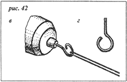 Вам понадобится мотор с зажимом-цангом, в котором вы закрепите специальный крючок. Его можно сделать из неотожженной серебряной проволоки сечением 1,2 мм. Если жалко, то из какой-либо другой, но не слишком мягкой проволоки (рис. 42, в, г). Понадобятся также флацанги.