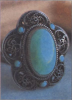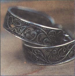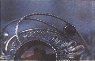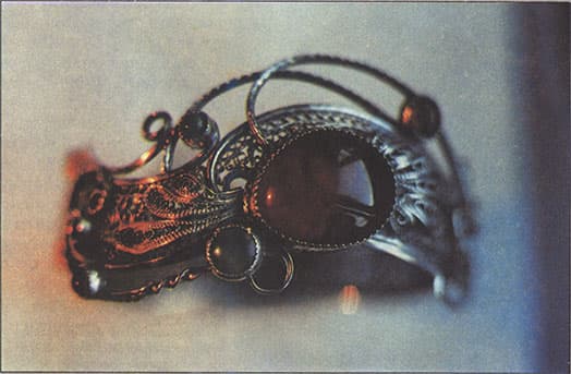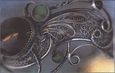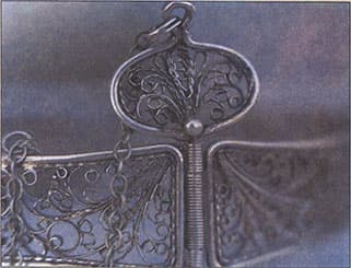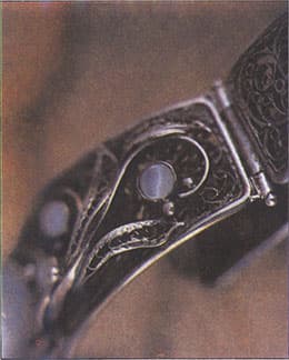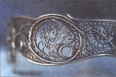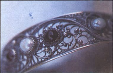 Штифтовое соединение звеньев браслета, выполненного в технике объемной филиграни.
