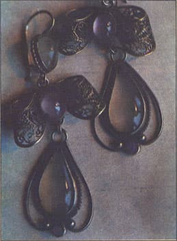 Серьги «Банты» с аметистами. В дужки серег и филигранный набор также вмонтированы камни.