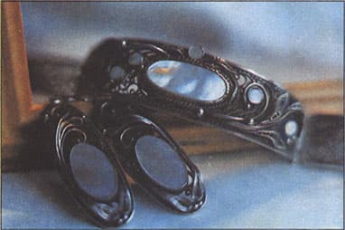 Использование как декоративного элемента верхнего набора перламутровой пластины.
