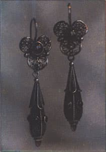 Серьги с жемчугом и гранатом, декорированные по фону сканью и дорожками.